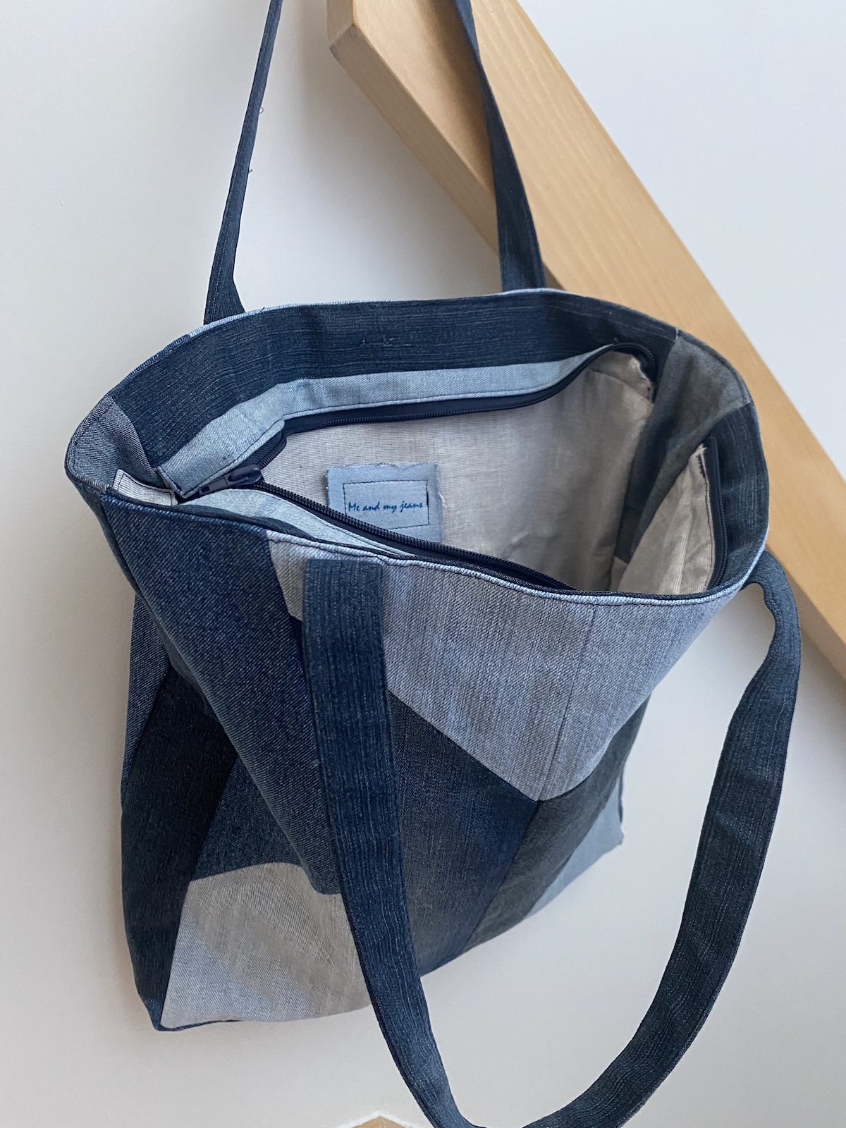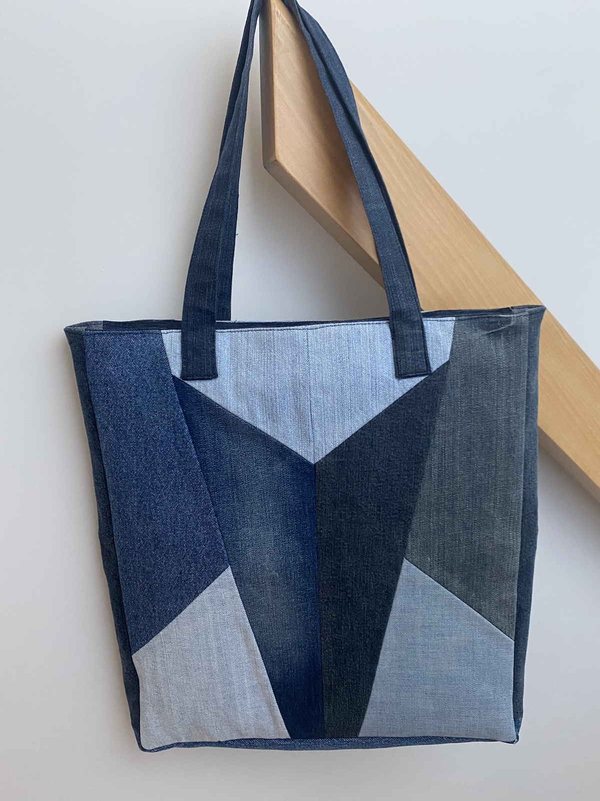 Geometrische vlakken sieren deze tas met extra diepte en een verzonken rits.
